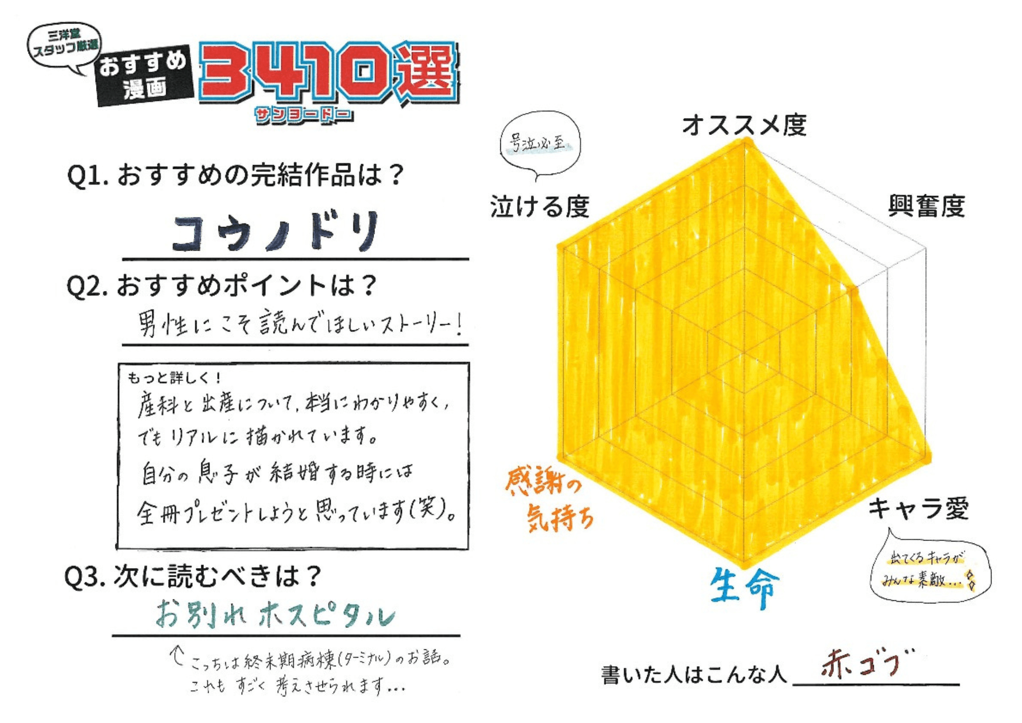 産科と出産について、本当にわかりやすく、でもリアルに描かれています。自分の息子が結婚する時には全冊プレゼントしようと思っています(笑)。