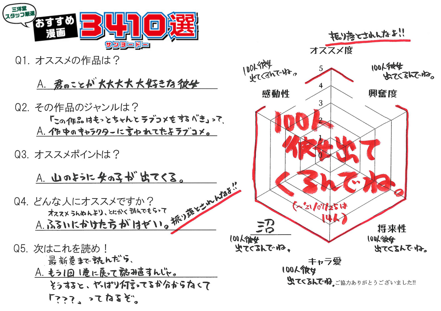 中学卒業式に100回目の失恋をした愛城恋太郎は、高校でこそ初めての彼女を! と願う。そんな彼の前に現れた恋の神様が告げた未来は「高校生活で出会う“運命の人”は100人。しかし彼女達は、幸せになれなければなんやかんや(中略)あって…死ぬ」突然始まるDEAD OR LOVEな純愛ハーレムライフ!! 絶対に脱落しない・させない! 負け彼女0の多人数LOVEコメディの新発明・新回答の第1巻!!