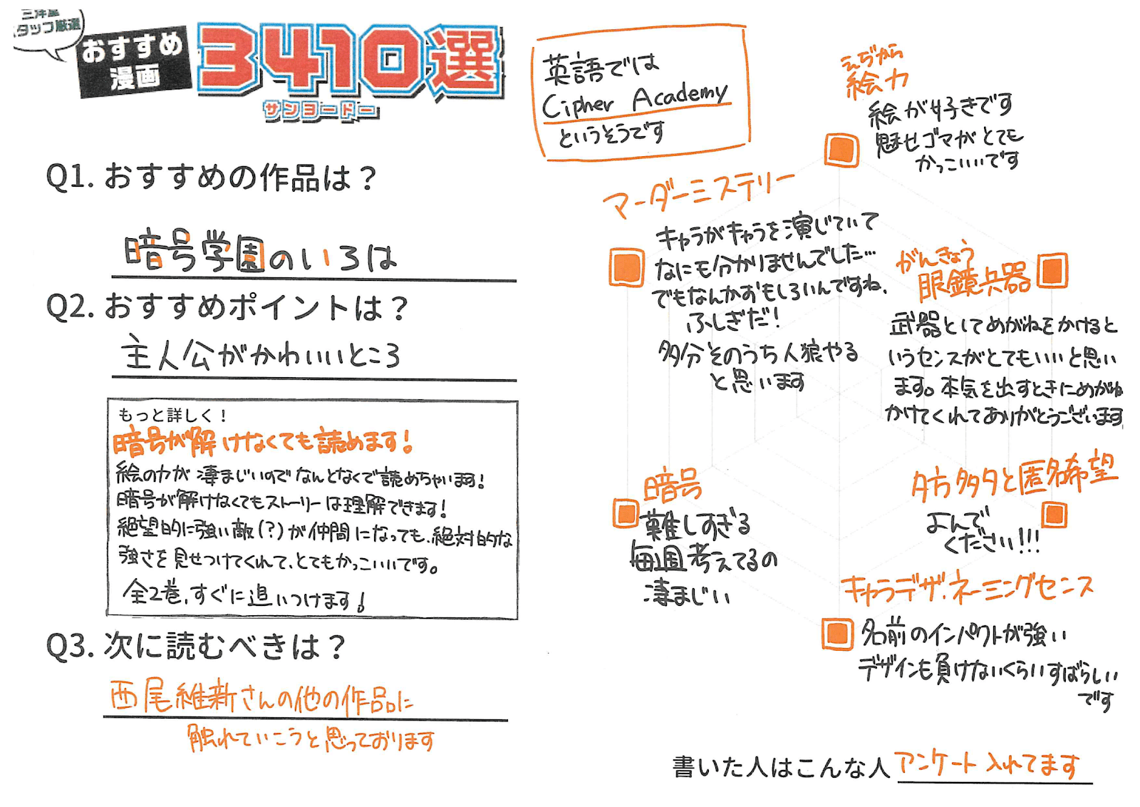 来たる世界大戦に備えて、暗号解読に長けた少女達が集う軍人学校。その名も『暗号学園』!! そんな高校とは露知らずに入学してしまったいろは坂いろはは、ひょんなことから学園生活を懸けた暗号バトルに巻き込まれることに…。苦戦するいろはだが、その手にはあらゆる戦争を停められる鍵が握られていて…!? 十五の少女達が、銃後で暗号を解く!! 奇想天外な学園ミステリードラマ、開幕!!