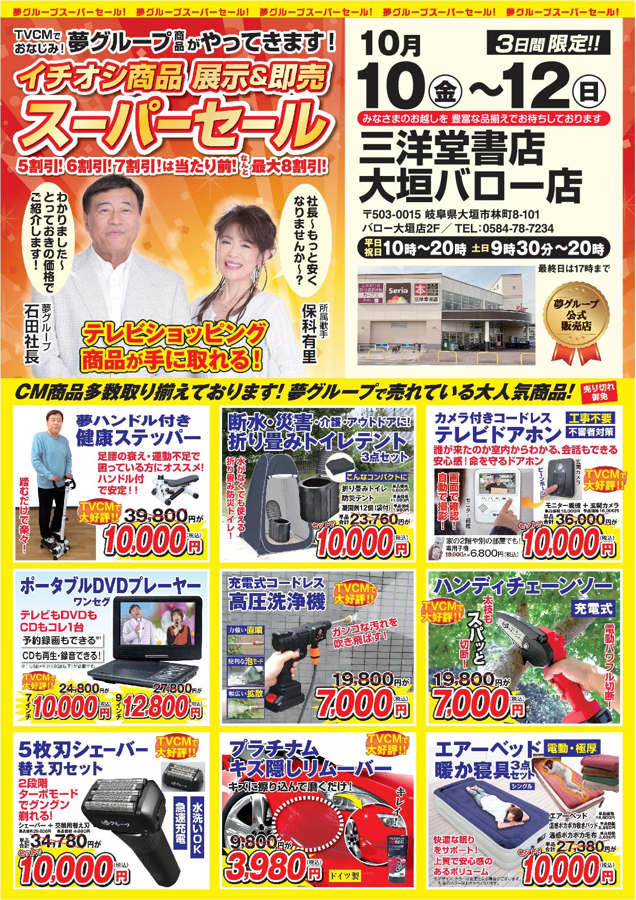 石田社長と歌手の保科有里さんのCMでおなじみ、「夢グループ」のスーパーセールを、三洋堂書店大垣バロー店で開催します!